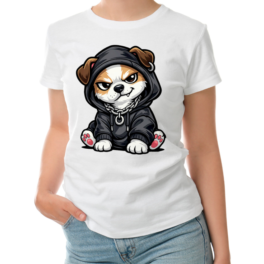 Мужской свитшот «Щенок в худи» цвет белый