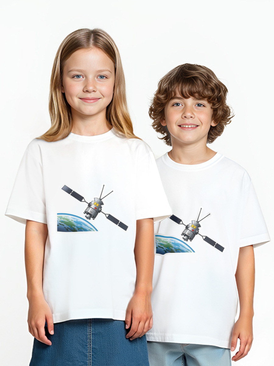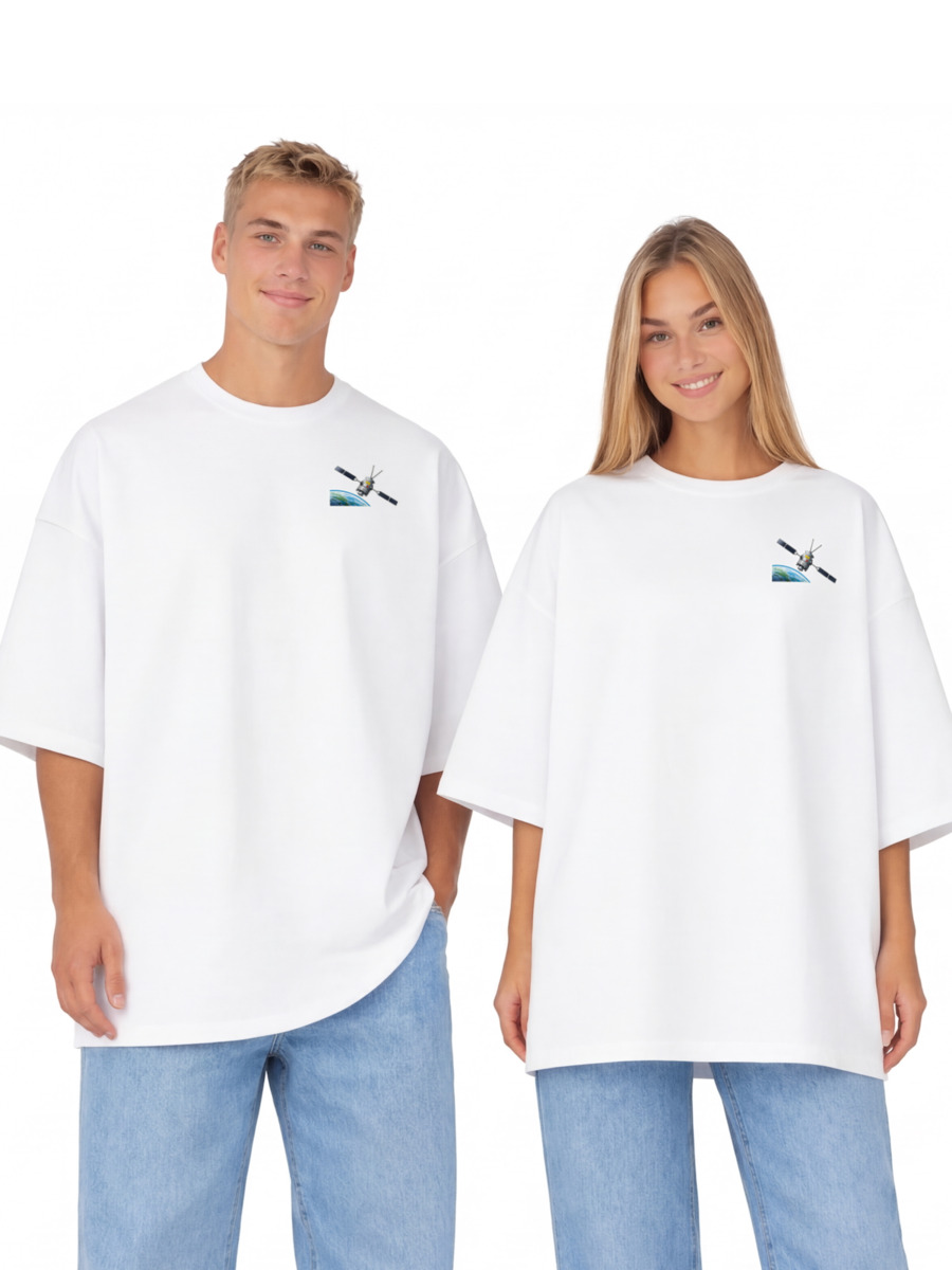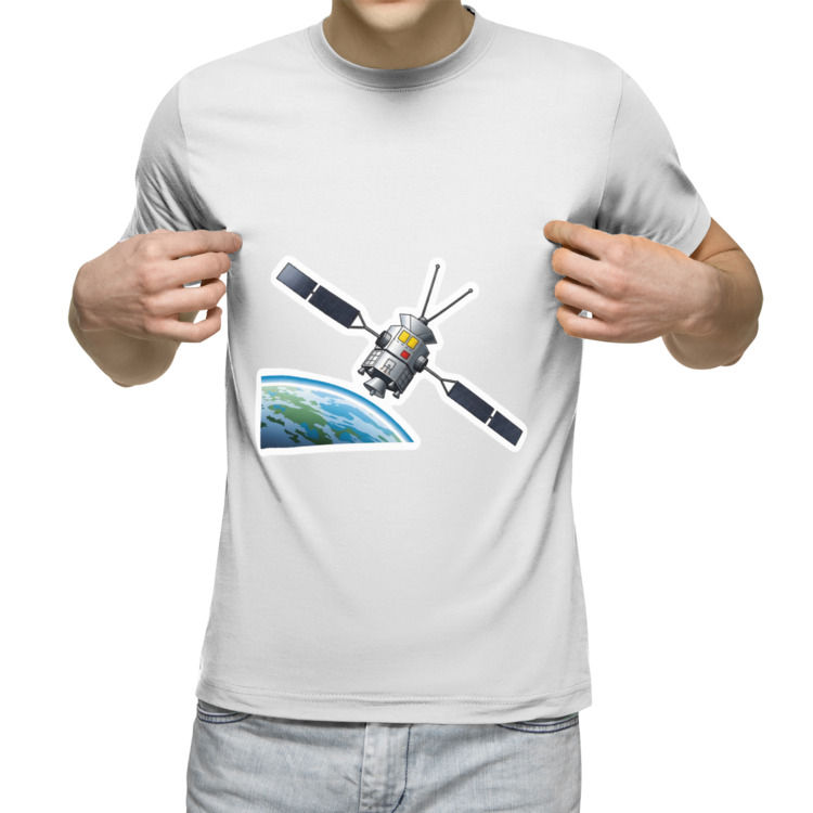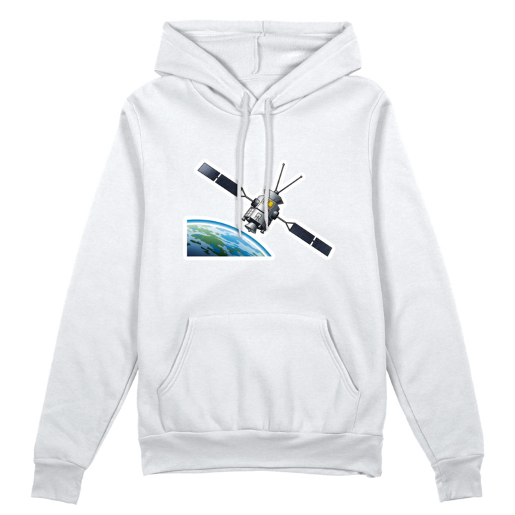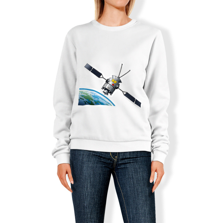 Мужской свитшот «Спутник летит вокруг планеты» цвет белый