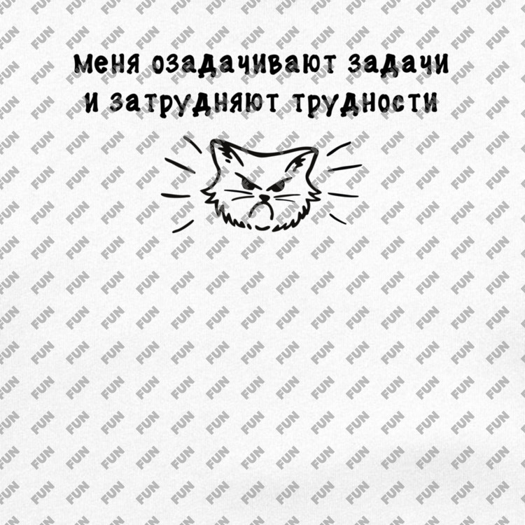 Мужской свитшот «Злой кот с фразой затрудняют трудности» цвет белый