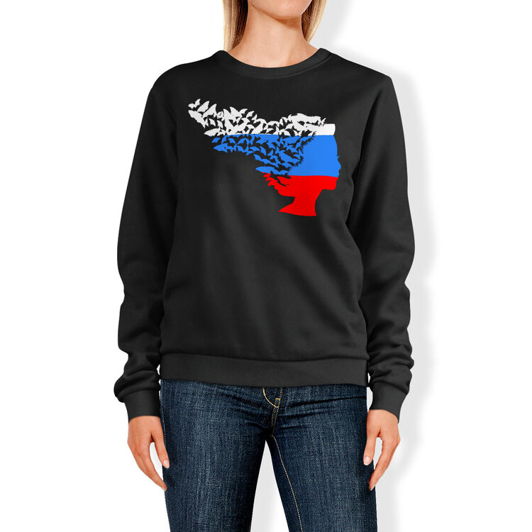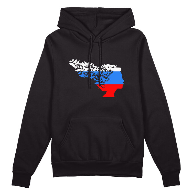 Мужская футболка «Бабочки в волосах в цветах российского флага» цвет черный