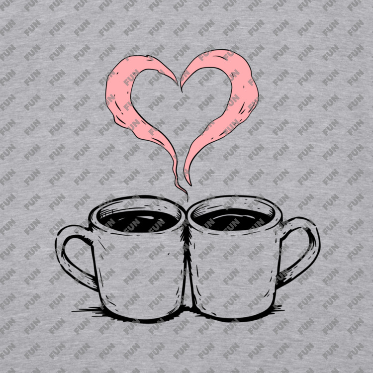 Мужская футболка «Две чашка и сердце» цвет серый меланж