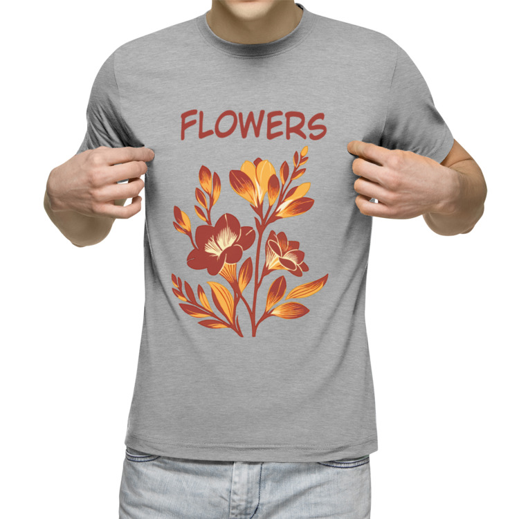 Мужская футболка «Двухцветный цветок» цвет серый меланж