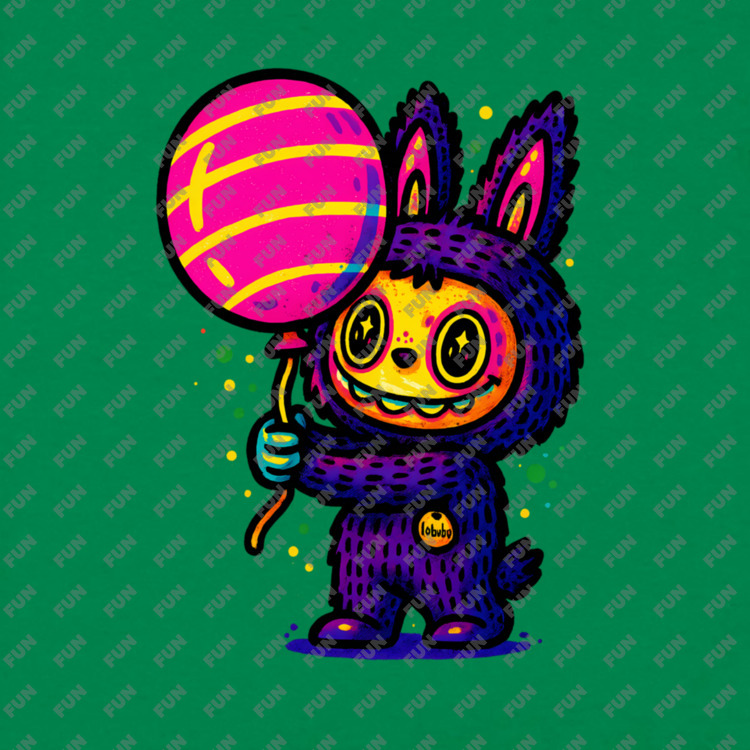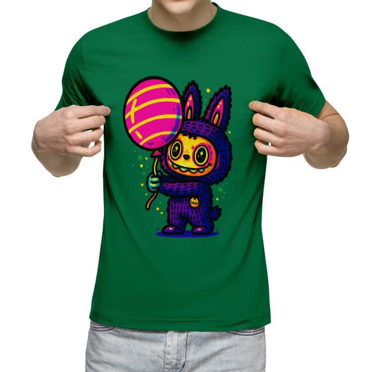 Мужская футболка «Фиолетовая Лабубу с шариком» цвет зеленый