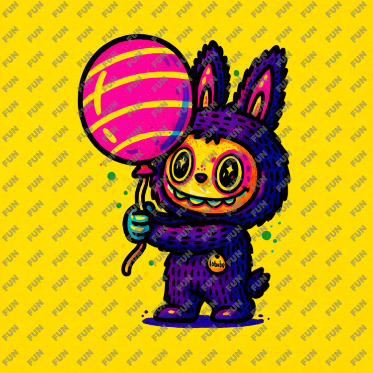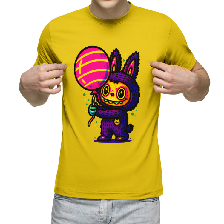 Мужская футболка «Фиолетовая Лабубу с шариком» цвет желтый