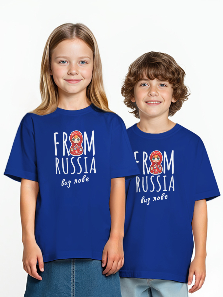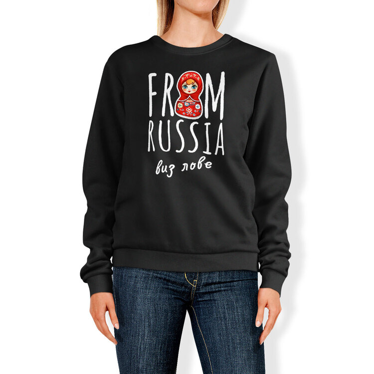 Мужская футболка «From Russia виз лове (шрифт белый)» цвет черный