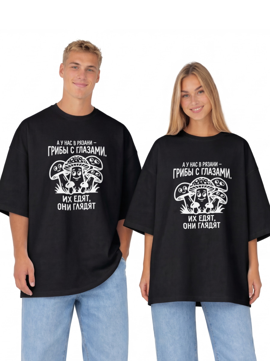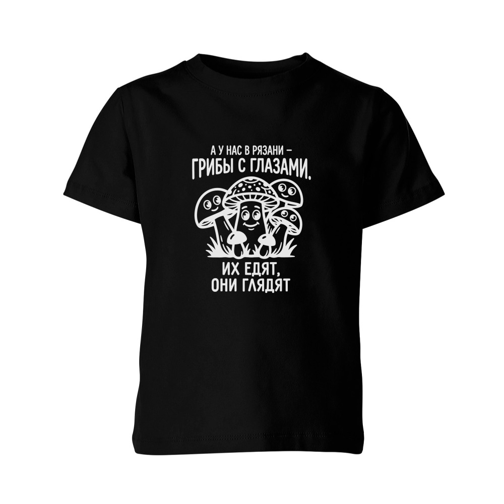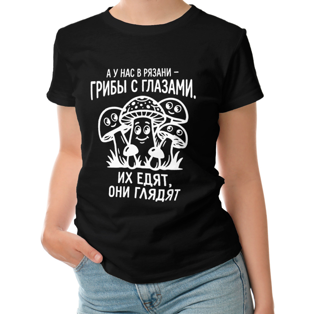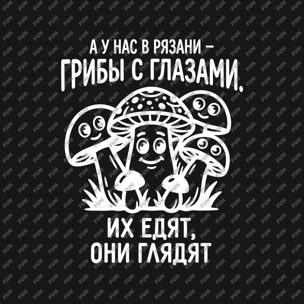 Мужская футболка «Графика: А у нас в Рязани - грибы с глазами» цвет черный
