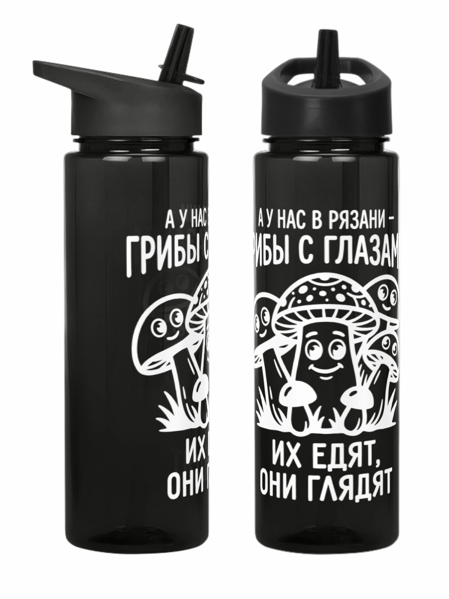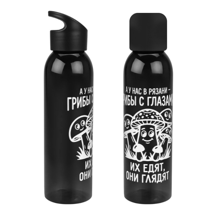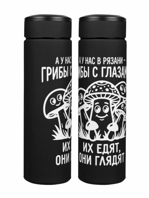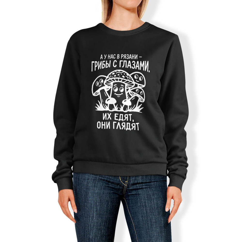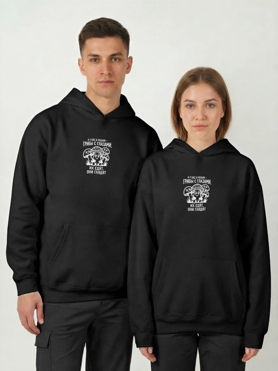 Мужская футболка «Графика: А у нас в Рязани - грибы с глазами» цвет черный
