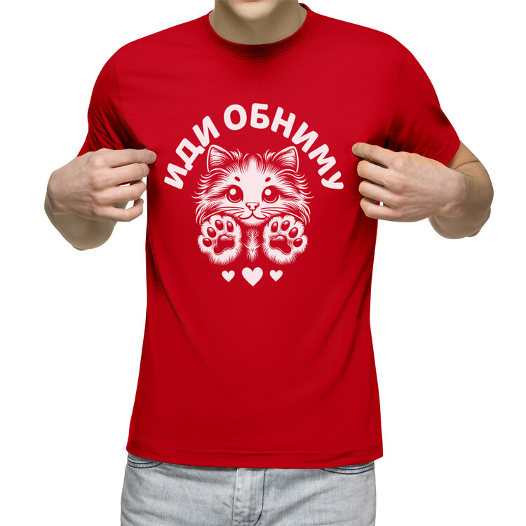 Мужская футболка «Иди обниму - милый котик» цвет красный