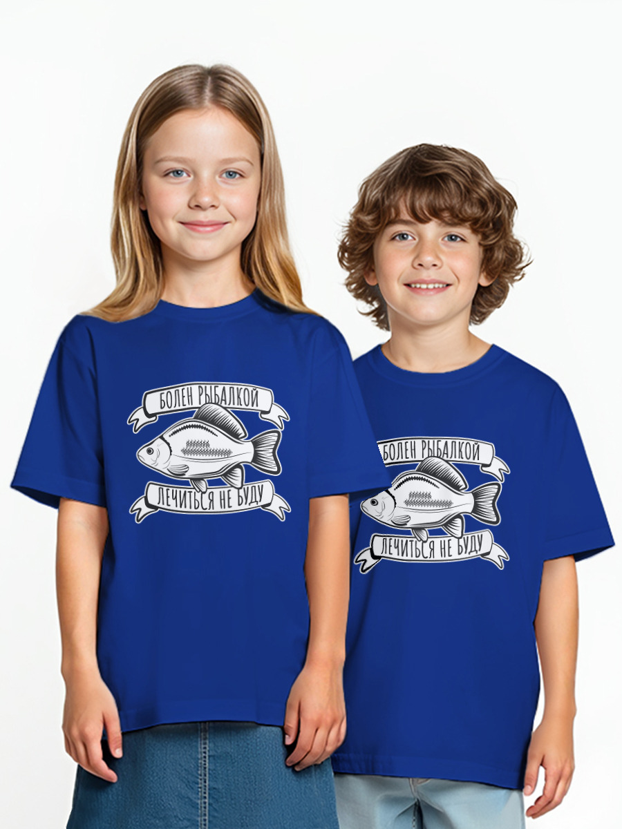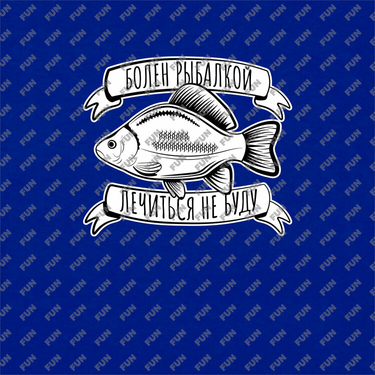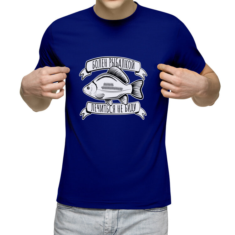 Мужская футболка «Карась и надпись про рыбалку с ленточками» цвет синий