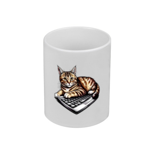Мужская футболка «кот на клавиатуре» цвет белый
