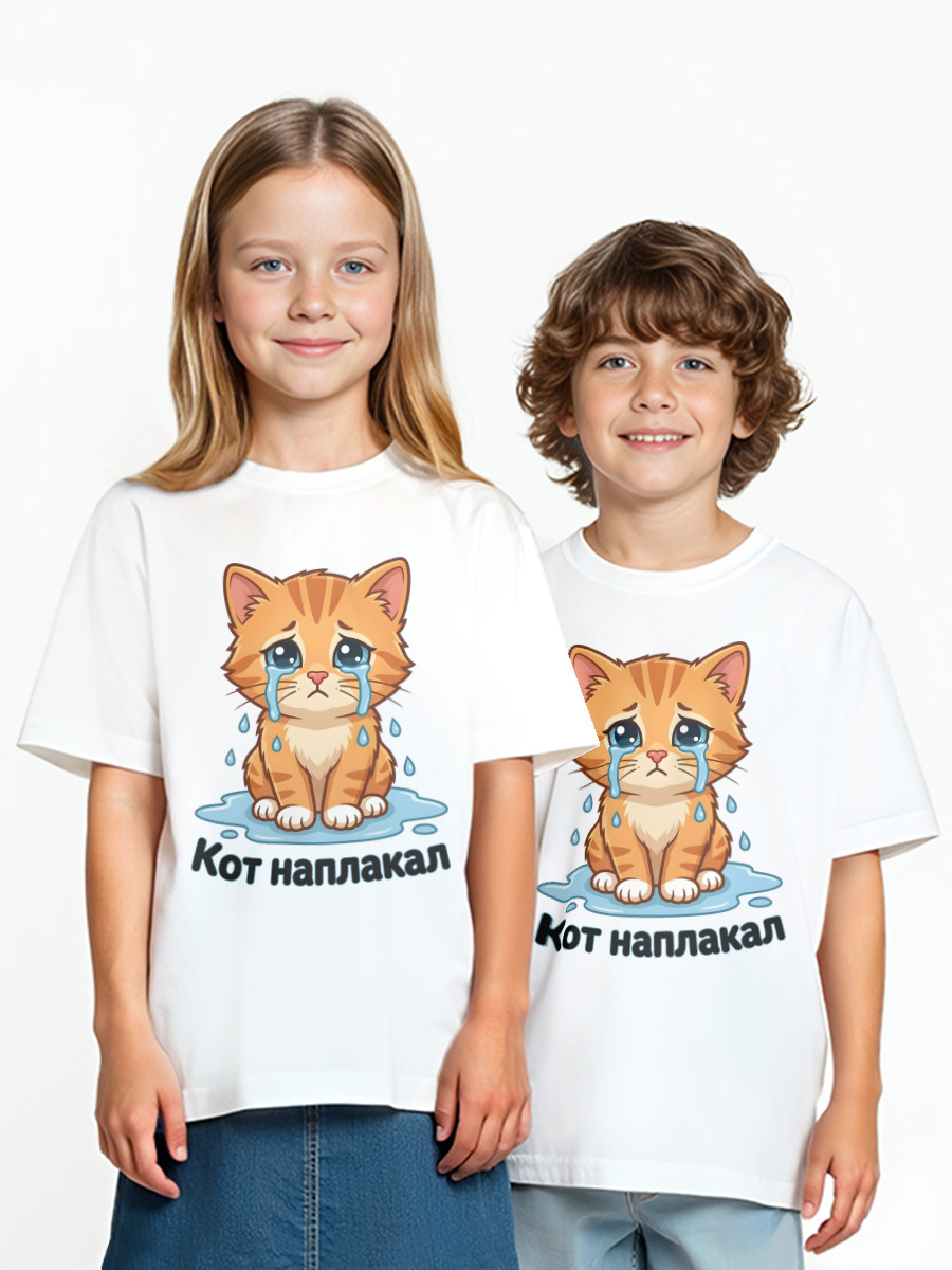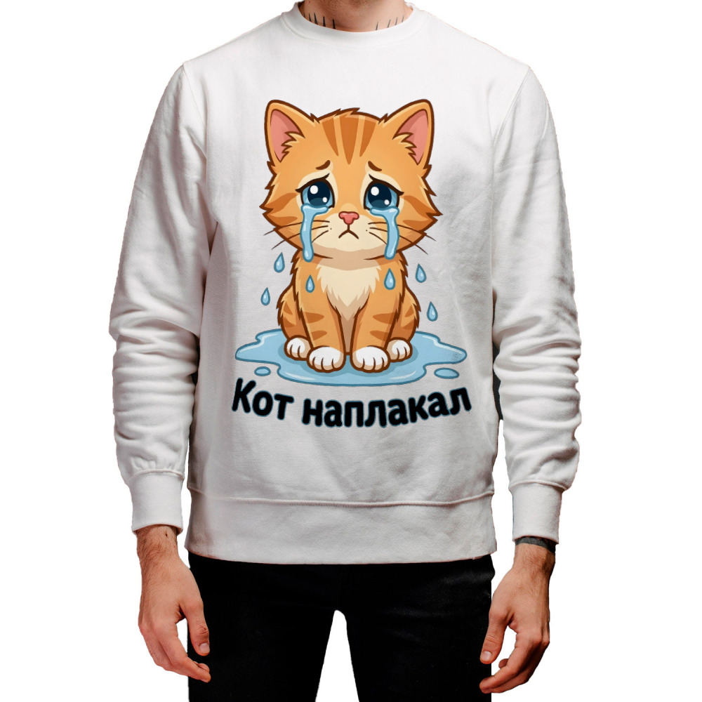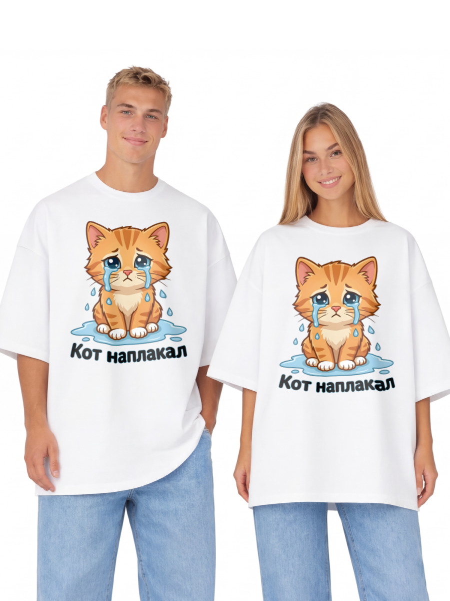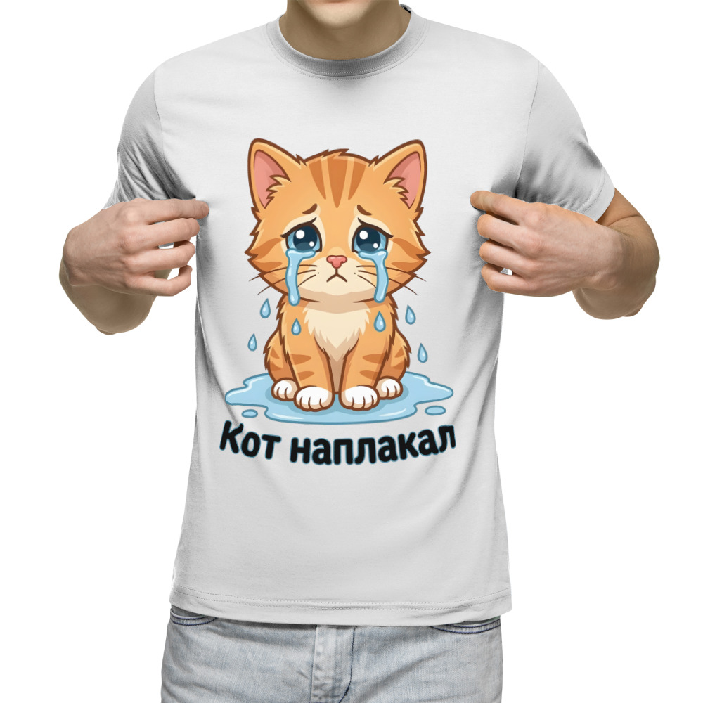Мужская футболка «Кот наплакал» цвет белый