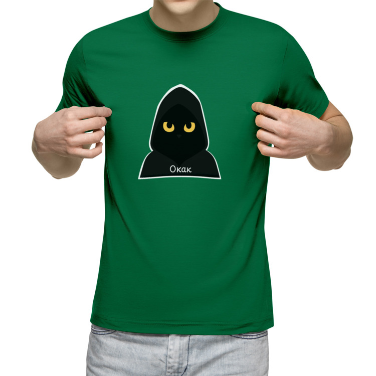 Мужская футболка «Котик-мем Окак» цвет зеленый