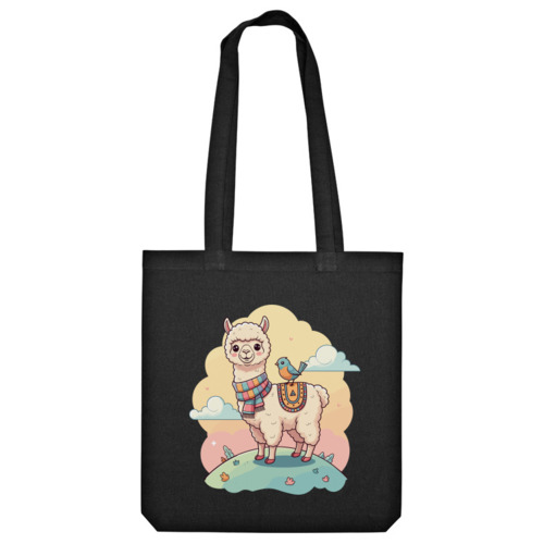 Мужская футболка «Лама с птичкой на спине» цвет белый