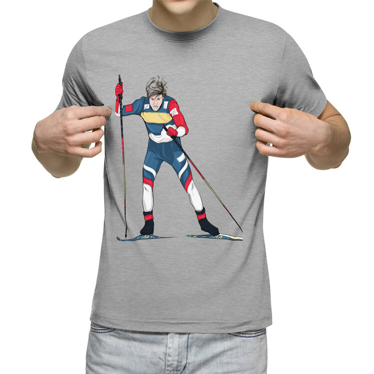 Мужская футболка «Лыжник» цвет серый меланж