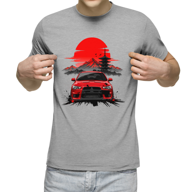 Мужская футболка «Mitsubishi Lancer Evo X» цвет серый меланж