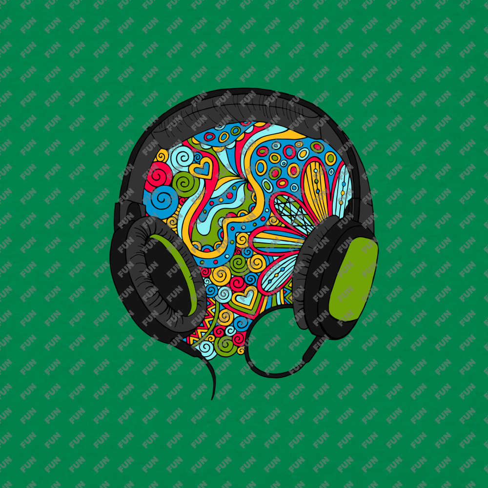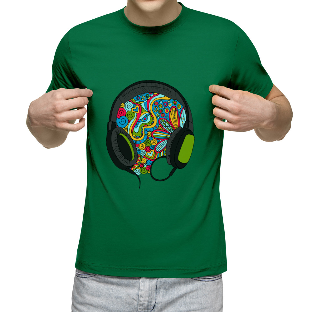 Мужская футболка «Музыка из наушников, дудл» цвет зеленый