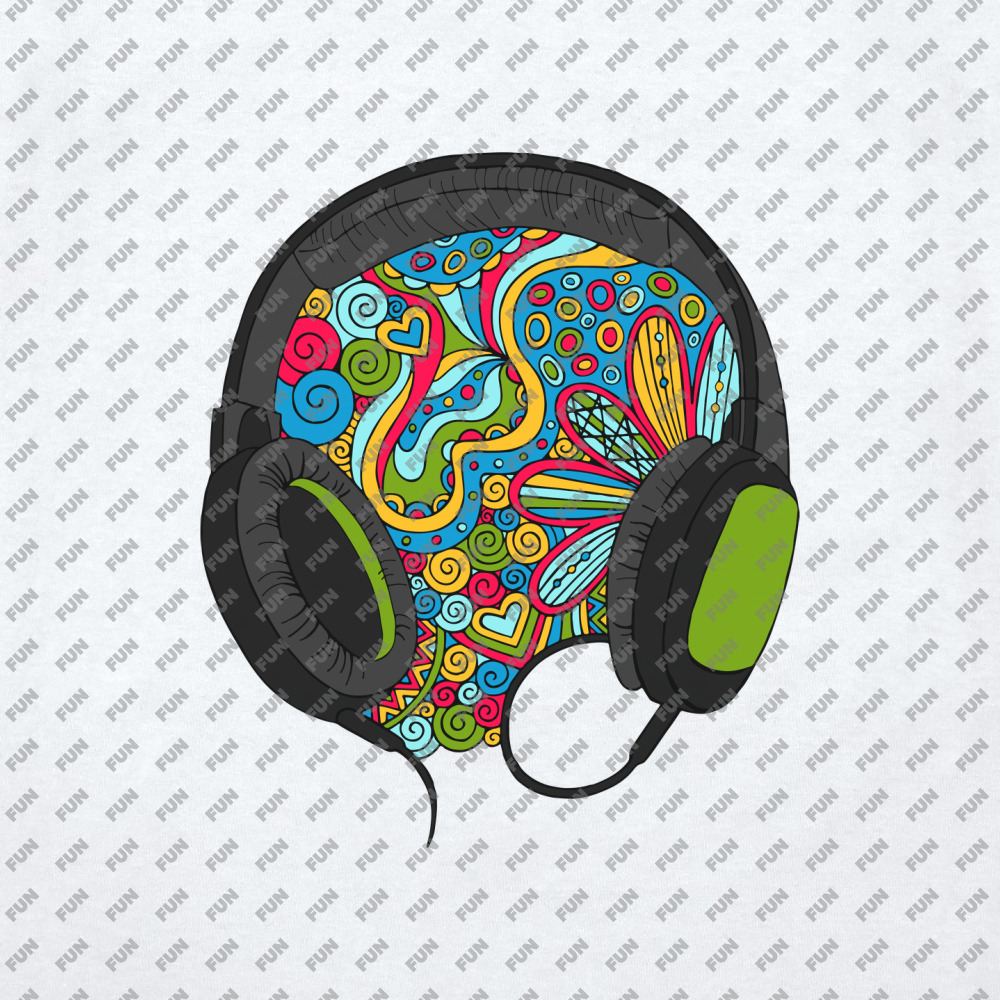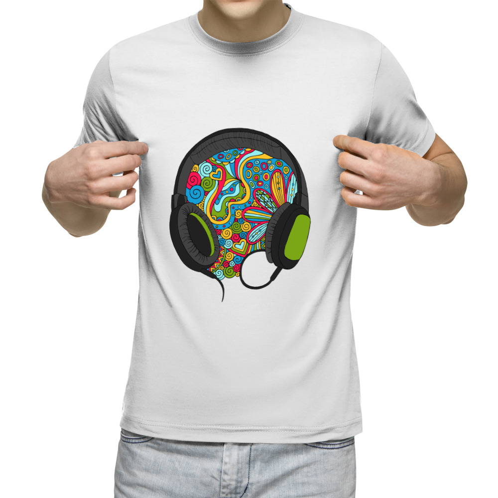 Мужская футболка «Музыка из наушников, дудл» цвет белый