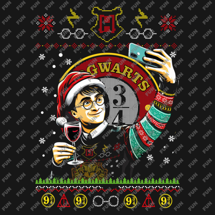 Мужская футболка «Новый Год Гарри Поттер» цвет черный