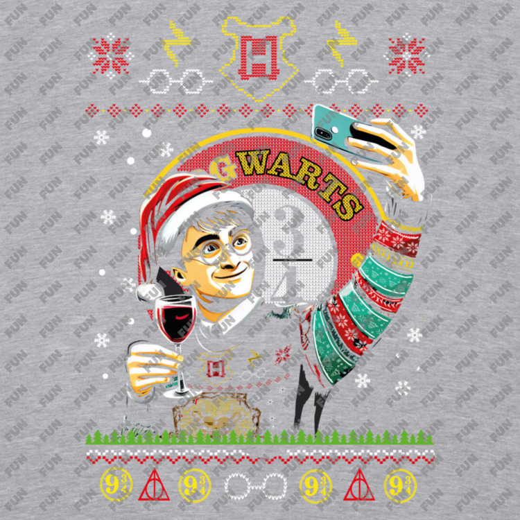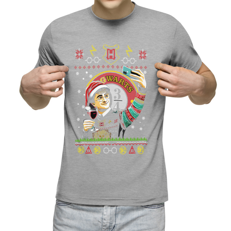 Мужская футболка «Новый Год Гарри Поттер» цвет серый меланж