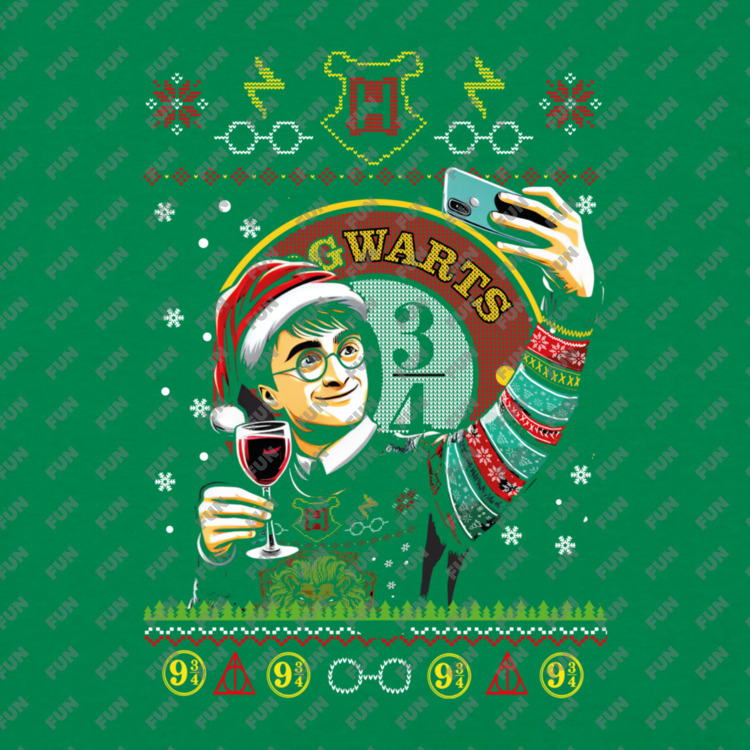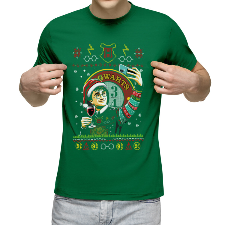 Мужская футболка «Новый Год Гарри Поттер» цвет зеленый