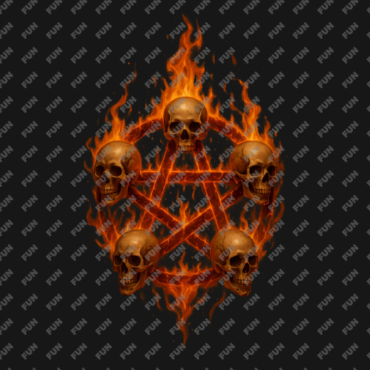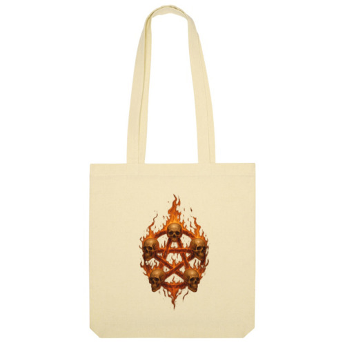Мужская футболка «Пентаграмма с черепами и пламенем» цвет черный