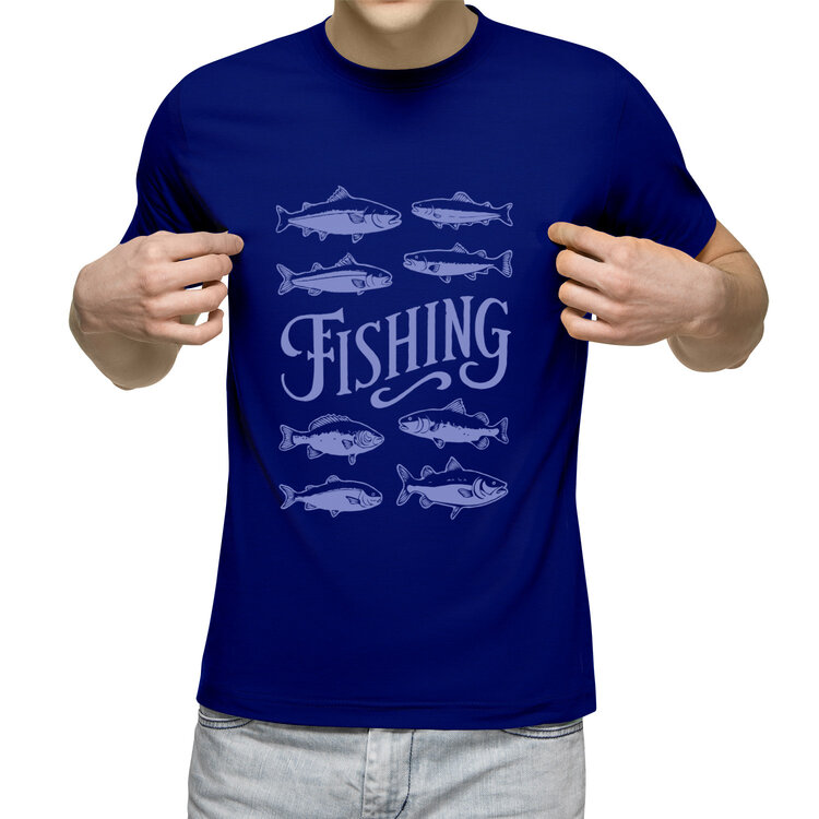 Мужская футболка «Рыбалка Рыбы Прикольная Надпись Рыбак» цвет синий
