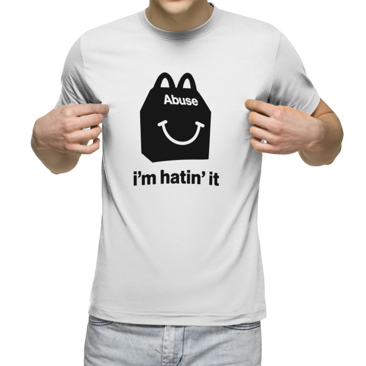 Мужская футболка «С надписью Abuse im hatin it абьюзер» цвет белый