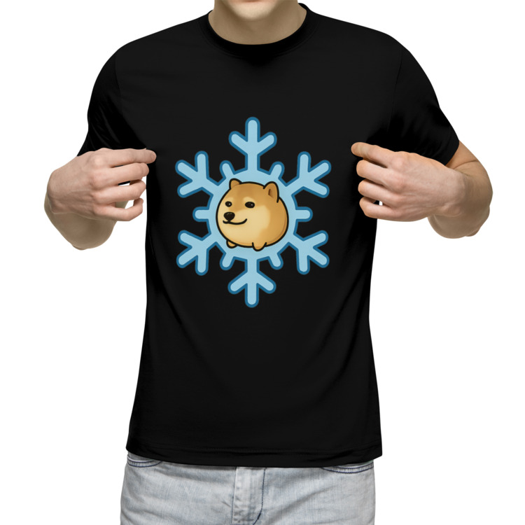 Мужская футболка «Собачка в снежинке» цвет черный