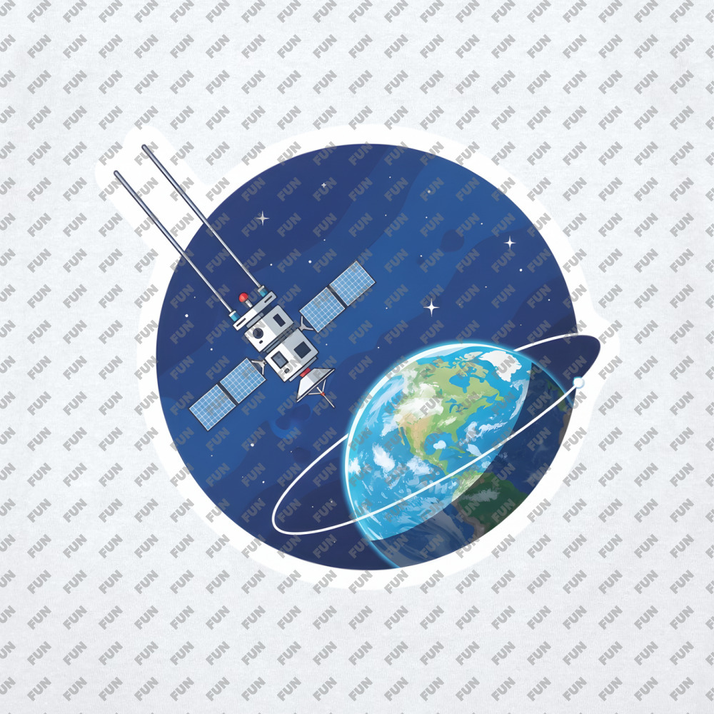 Мужская футболка «Спутник с антеннами летит вокруг планеты» цвет белый