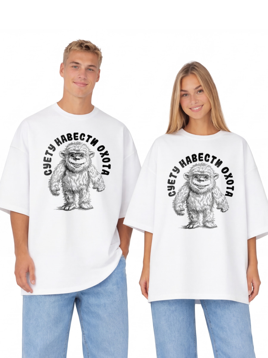 Мужская футболка «Суету навести охота - забавный йети» цвет белый
