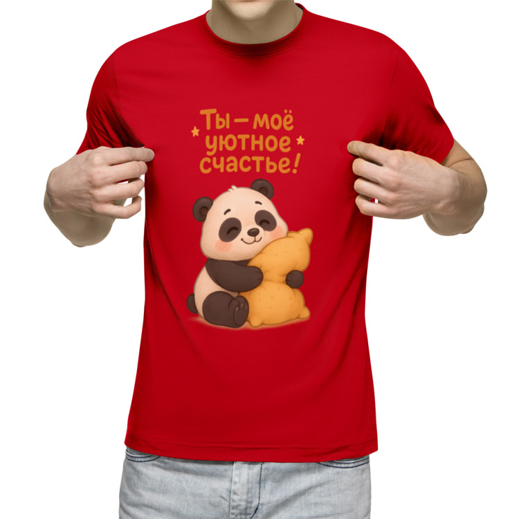 Мужская футболка «Ты - мое уютное счастье» цвет красный