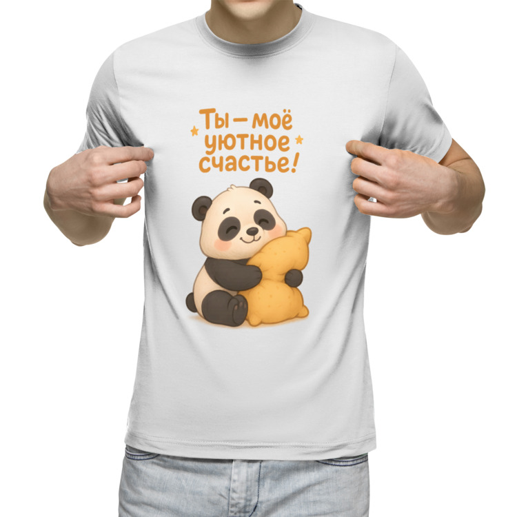 Мужская футболка «Ты - мое уютное счастье» цвет белый