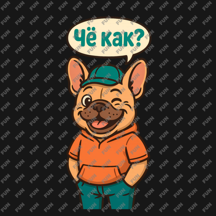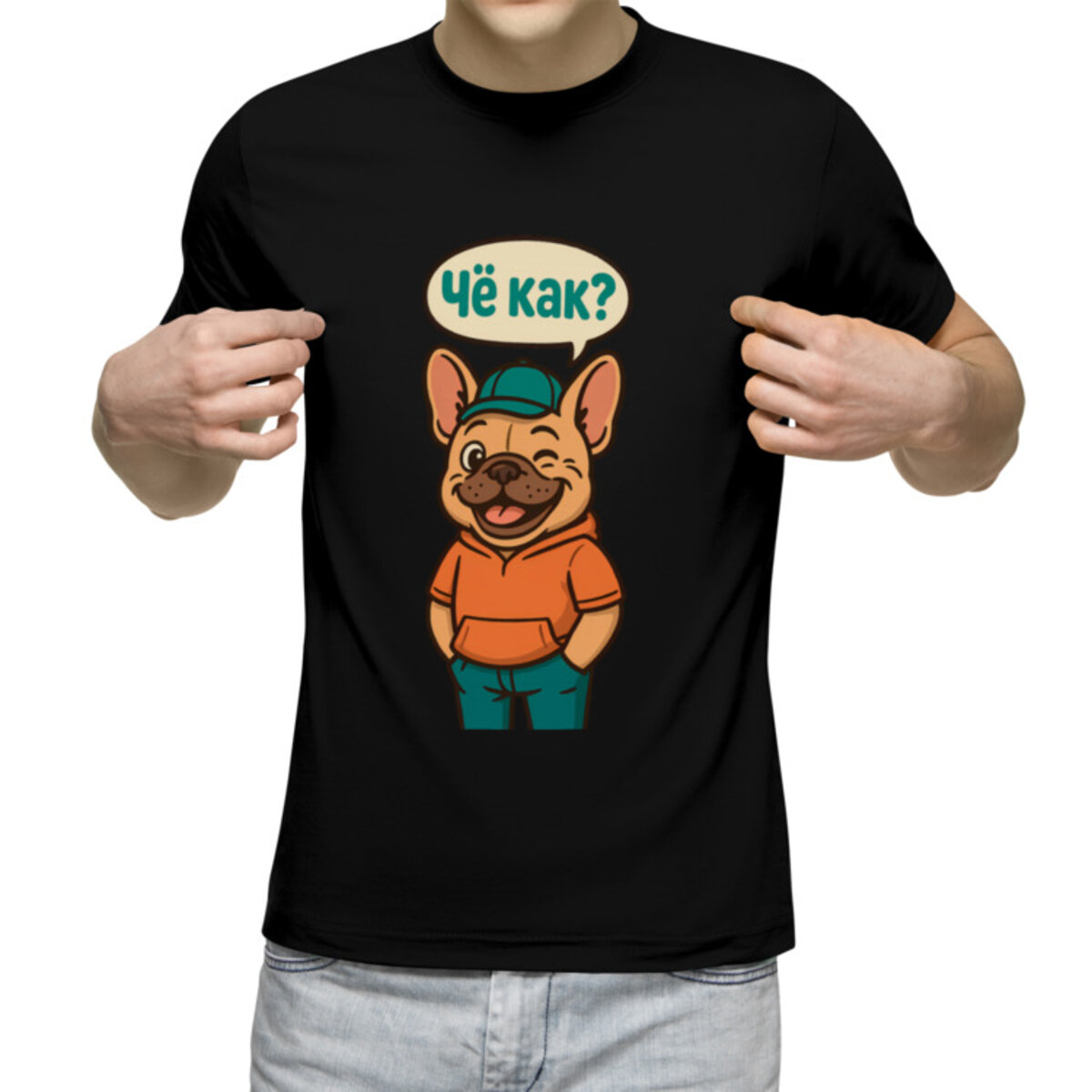 Мужская футболка «Веселый бульдог - чё как?» цвет черный