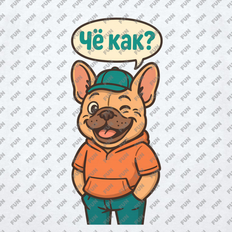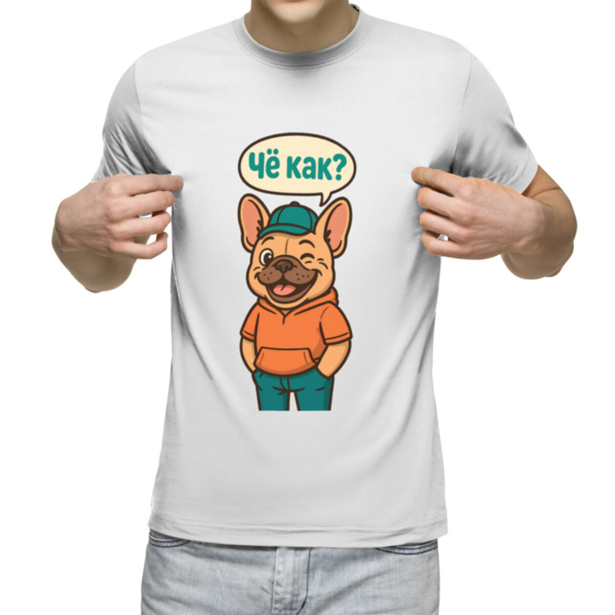 Мужская футболка «Веселый бульдог - чё как?» цвет белый