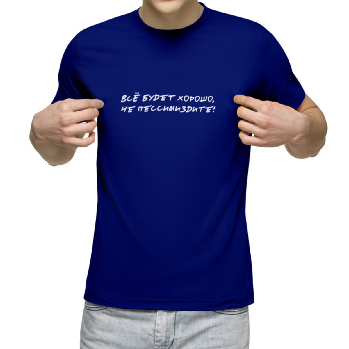 Мужская футболка «Всё будет хорошо, не пессимиздите!» цвет синий