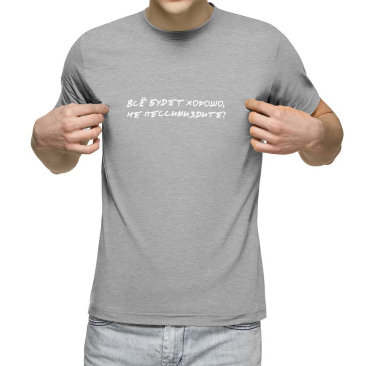Мужская футболка «Всё будет хорошо, не пессимиздите!» цвет серый меланж