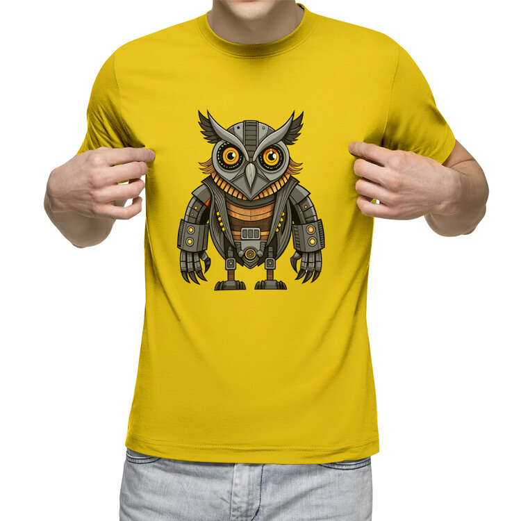 Мужская футболка «Высокопроизводительный робот сова» цвет желтый