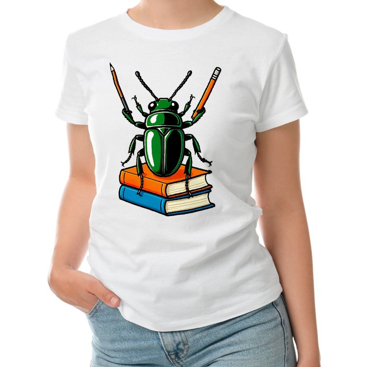 Мужская футболка «Жук-учитель с карандашами» цвет белый