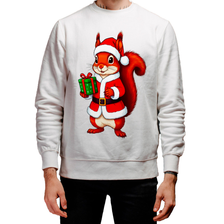 Мужской свитшот «Белка-Санта с подарком»