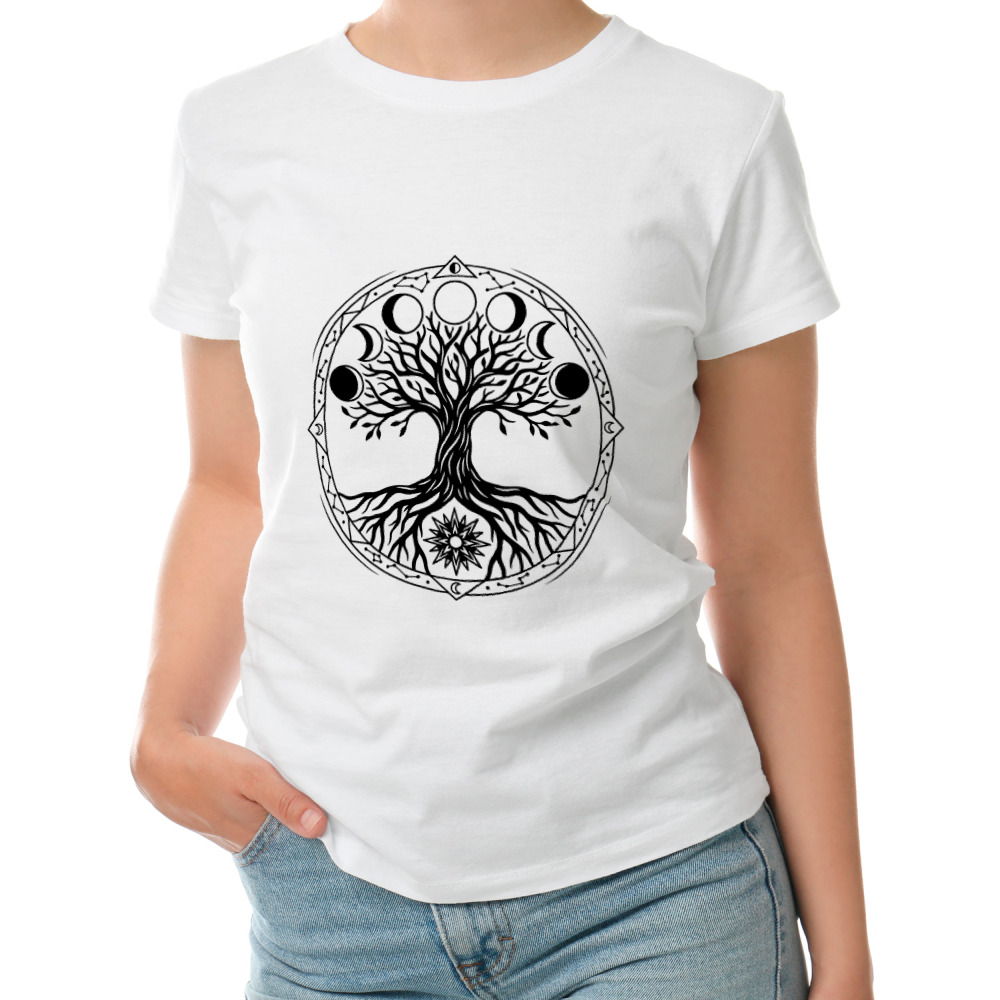 Женская футболка «Дерево жизни и фазы луны»