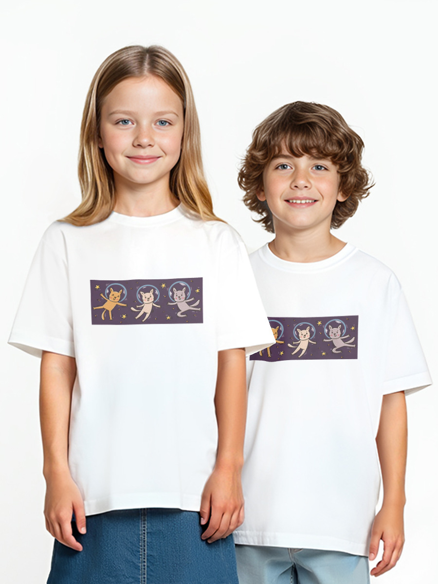 Детская футболка «коты - космонавты. Космос. Звезды»