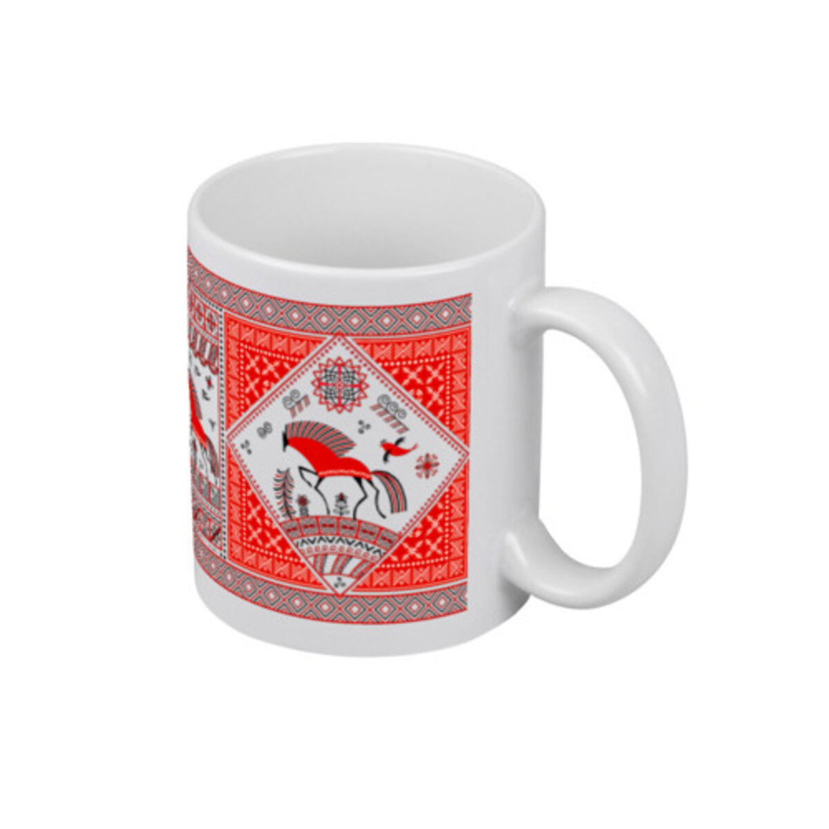Кружка «КРАСНЫЕ КОНИ. Мезенские мотивы..» цвет белый