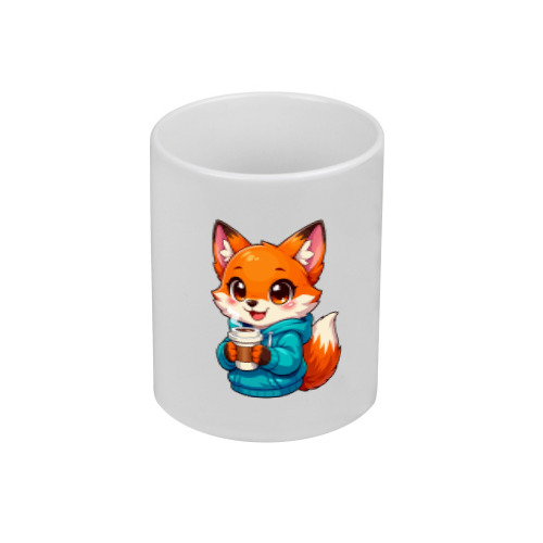 Детская оверсайз футболка «Лиса в худи с кофе»