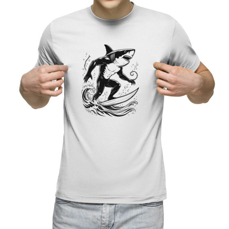 Мужская футболка «Мускулистая акула-сёрфер»
