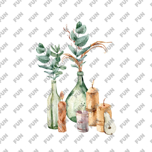 Бутылка для воды «Бохо цветы в вазе листья эвкалипта принт»