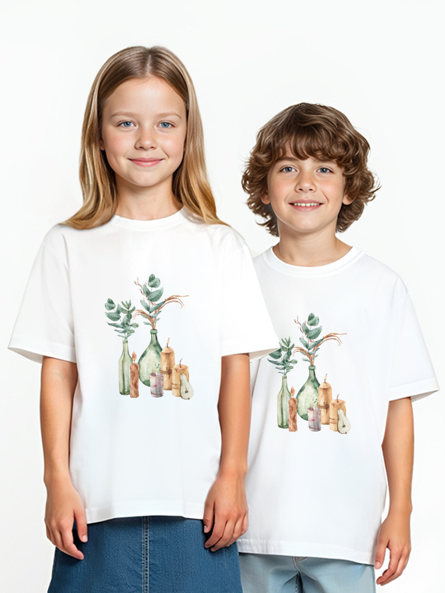 Детская футболка «Бохо цветы в вазе листья эвкалипта принт»