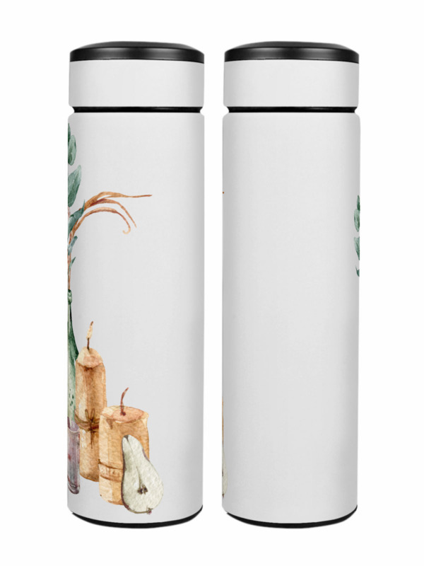 Термос «Бохо цветы в вазе листья эвкалипта принт»