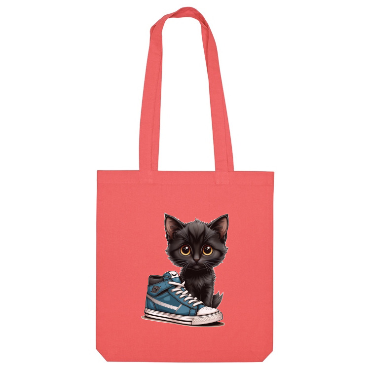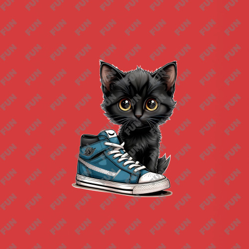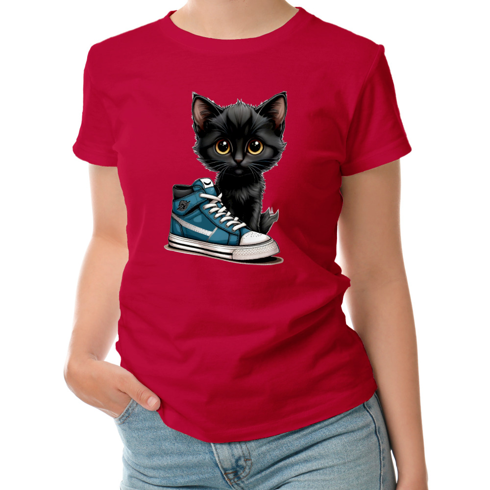 Футболка оверсайз «Чёрный котёнок с кроссовком»