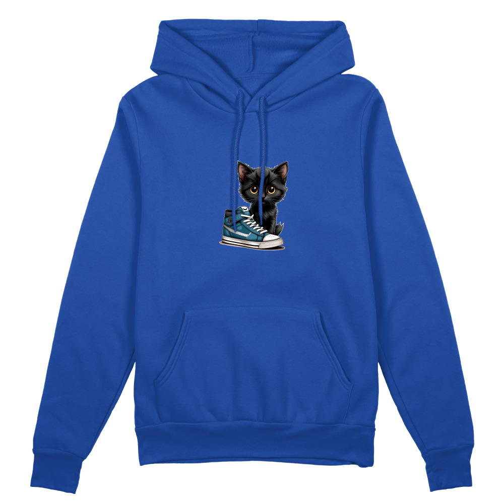 Худи оверсайз «Чёрный котёнок с кроссовком»