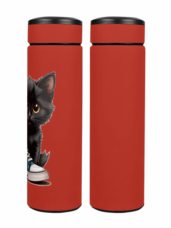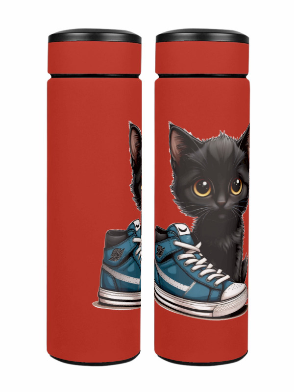 Термос «Чёрный котёнок с кроссовком» цвет красный